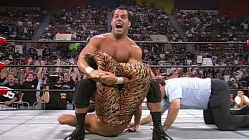 112 min"Rowdy" Roddy Piper preps for battle; The Outsiders and Syxx cross a line; A ref threatened.